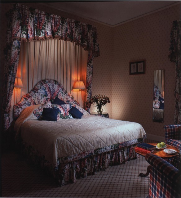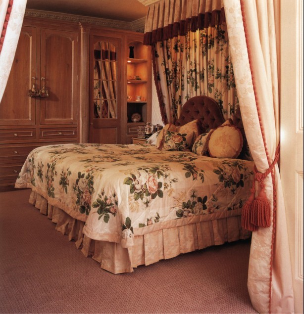 將帷幔的設(shè)計(jì)局限于床頭,與其說(shuō)具備實(shí)際的遮擋作用還不如說(shuō)就是為了純粹裝飾而進(jìn)行的設(shè)計(jì)。上圖中向我們展示了帷幔設(shè)計(jì),溫和中透露出淡淡的高雅,成為臥室軟裝飾中的一處妙筆。