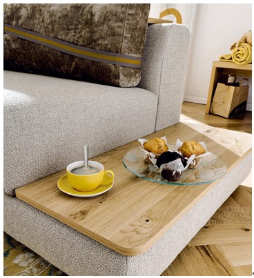 當你想在沙發(fā)區(qū)獲得更多活動空間,可以選擇這種與沙發(fā)集合在一起的茶幾,讓你在坐臥之間盡享舒適。遙控器、手機、零食這些看似易忽略卻又不能缺少的小物品,都可以盛放在觸手可及的茶幾上。你盡可以在沙發(fā)前面擺放腳凳,讓勞累一天的雙腳得到充分解放。
