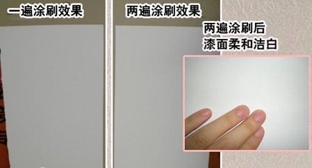 過半個(gè)小時(shí)左右,測評(píng)員仔細(xì)查看,現(xiàn)場比對(duì),發(fā)現(xiàn)涂刷一次的效果也不錯(cuò),除了石膏板面上的小突起外基本上將石膏板完全覆蓋,漆面也比較有光澤,不過明顯感覺漆膜比較??;再對(duì)比涂刷兩次的石膏板,看起來富有光澤,漆面柔和潔白。不過在實(shí)際的施工過程中,第一遍要表干2小時(shí),4-6小時(shí)后涂刷第2遍,這樣效果會(huì)更好。