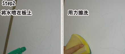 下面是測試此款油漆的耐擦力和抗污性,用蠟筆在涂料面板上圖畫后,然后用水噴灑在面板上,用力擦洗,很快筆畫部分被清洗干凈,不過由于蠟筆顏色比較鮮艷,也有可能會(huì)留有一點(diǎn)點(diǎn)痕跡。
