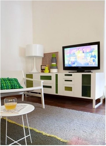 電視柜面深淺不一的綠色,讓你在看電視的時候也能守望早春的氣息,緩解視覺疲勞。而造型簡單、充滿質(zhì)感的黃綠色物件,不張揚(yáng)卻能散發(fā)出濃濃的春意。圓形、方形圖案加上用色,讓電視柜延伸出更多新鮮感。