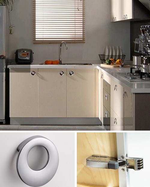米色的木質(zhì)柜面清新淡雅,搭配白色的仿石柜面時(shí)尚之余不失清秀,圓環(huán)形的拉手不僅使我們使用更方便,也使方正的櫥柜增添幾分柔和。淺米色的柜面自然中帶點(diǎn)小溫馨,簡(jiǎn)單干練的磨砂銀色拉手體現(xiàn)出現(xiàn)代的時(shí)尚風(fēng)格,黑色的仿大理石柜面有股低調(diào)的奢華感覺(jué),整個(gè)櫥柜清新又不失高雅。