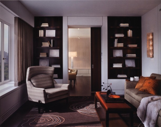一個睿智的滿載生活經(jīng)歷的魅力男人的書房。臨窗的一個不在的空間,作為書房的重要存在。它被主人有意識地塑造成一個素雅的空間,用灰色來描述懷舊的情愫,寬大的沙發(fā)仿佛是一個低調(diào)的傾訴者,向每個進入室內(nèi)的人傾訴歲月流逝所留下的痕跡。