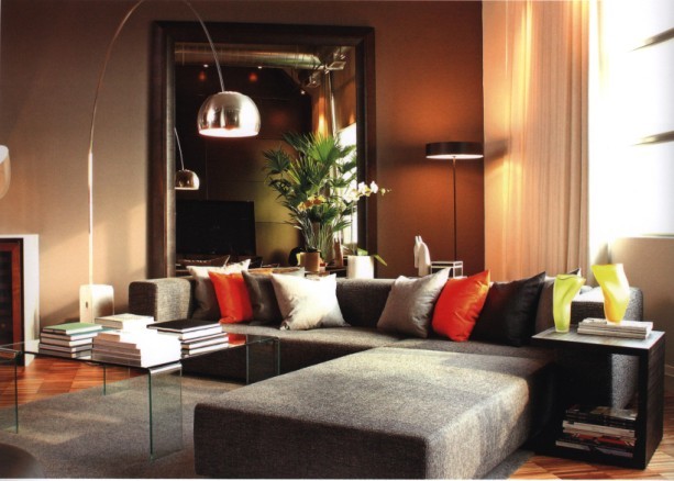 這個客廳給人一種歡快的跳躍情緒,雖然普通的造型、普通的色彩、普通的質(zhì)料,仿佛所有的元素都沒有任何給人以驚喜的成分,這種沙發(fā)的設(shè)計貌似很平常,可這不正是生活的真實寫照么!平淡中更顯示出生活的本真。這款沙發(fā),配上幾個彩色的靠墊,妙處由此而生。它告訴我們只要適當(dāng)?shù)丶右哉{(diào)節(jié),生活就會變得妙趣橫生。