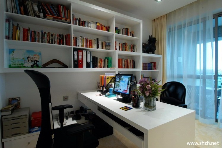 概要: 書(shū)房在都市家庭生活中的作用很重要,怎么樣合理的安排格局,如何有效地提高書(shū)房環(huán)境及工作效率。一般家庭中書(shū)房面積在8-15平方米,在這個(gè)內(nèi)定范圍內(nèi),實(shí)現(xiàn)收藏、讀書(shū)、休息區(qū)。一般收藏區(qū)適合沿墻展開(kāi),一來(lái)比較節(jié)省空間也能充分利用室內(nèi)墻面的應(yīng)用?! ?shū)桌是人們?nèi)粘Wx書(shū)寫(xiě)字的地方,光線一定是書(shū)房里最好的。