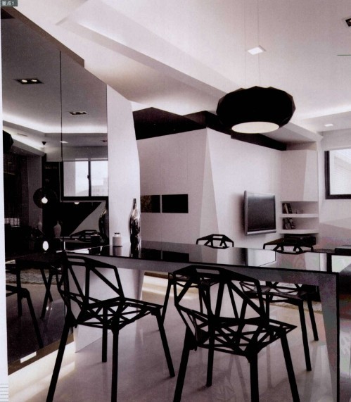 沙發(fā)在每個(gè)家庭都會出現(xiàn),而并不是每個(gè)家庭的沙發(fā)都有收納功能。這款L形的沙發(fā),是特別訂制的,其折疊線條看似簡單,卻要設(shè)計(jì)師與施作者完美配合才能實(shí)現(xiàn),適當(dāng)加入的黑鏡材質(zhì)質(zhì)更具時(shí)尚感。