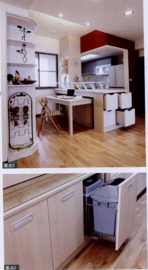 概要: 這個家的收納空間以廚房吧臺為中心,兼具了強大收納功能與獨特造型的寬闊吧臺,讓人完全無法想象定制柜的強大。此外,設(shè)計師帶著業(yè)主MM跑了好幾天的建材市場,MM也掌握了定制家具的可以隨心所欲的百變特質(zhì),預(yù)留了一個直立式冂形區(qū)域,將新購的餐桌隱身于吧臺內(nèi),依需求而收放。