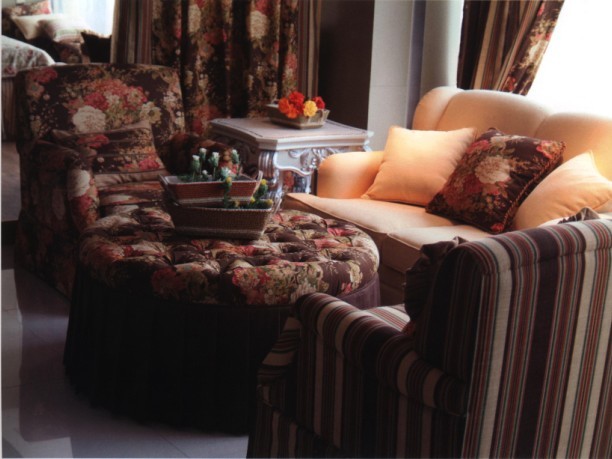 家居裝修中寬大、柔軟的沙發(fā)可以從視覺(jué)上給人以舒適、柔和的感受、同時(shí)也會(huì)給人以身心的放松。再配上低調(diào)的花色圖案,裝飾的意味更加濃郁起來(lái)。沙發(fā)在室內(nèi)空間的存在可以純裝飾性的角色。上圖向我們展示的,采用鮮艷的色彩、突出的圖案使得沙發(fā)成為室內(nèi)裝飾中一道非常突出的風(fēng)景。