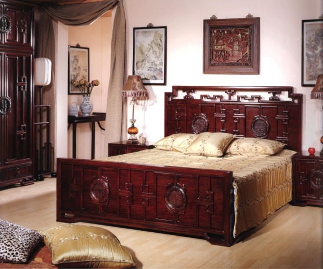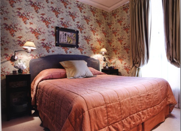 概要: 古典的裝飾不僅僅會(huì)給人帶來(lái)一種懷舊的情懷,還能夠安撫人們浮躁的情緒,同時(shí)也能夠營(yíng)造出奢華的空間氛圍。這個(gè)臥室空間床的設(shè)計(jì)采用經(jīng)典的復(fù)古風(fēng)格,對(duì)于床頭以及床身精心雕琢出的圖案,再配上傳統(tǒng)的紅色,濃濃的東方意味自然地彌散開(kāi)來(lái)?! ∵@個(gè)美式大戶型的臥室,在空間的裝飾設(shè)計(jì)中,色彩是表現(xiàn)床的突出元素,為了與墻紙的圖案相搭配,床被的色彩采用了暖色調(diào),在烘托出空間溫暖的氛圍的同時(shí),也能夠給人以視覺(jué)上的沖擊,從而起到裝飾的效果。