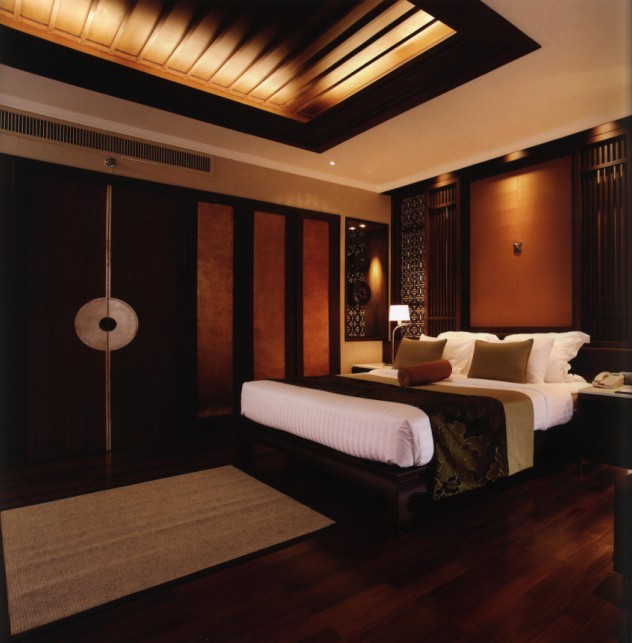 這個(gè)東南亞風(fēng)情的臥室,在空間設(shè)計(jì)中,更多地運(yùn)用了木質(zhì)材質(zhì)作為裝飾的主要材質(zhì),用深色調(diào)的色彩來(lái)烘托出古色古香的裝飾效果,為了強(qiáng)調(diào)色彩對(duì)比,床的設(shè)計(jì)則采用了白色和淺綠色的淺色,進(jìn)而形成混搭的裝飾風(fēng)格,給人留下深刻的印象。