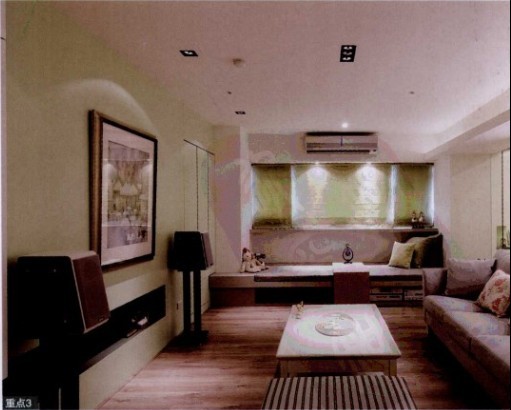 由于空間有限,為了盡可能的增加收納功能,設(shè)計師規(guī)劃了多功能的電視墻,并連接隱藏式的鞋柜、CD柜,墻面的完整創(chuàng)造出寬廣的視覺效果。而臨窗的臥榻下則成為了視聽設(shè)備的收納柜。本來想收藏其它物品,空間有限,只能做視聽設(shè)備的藏身之用了。