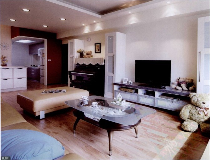 家里的GG喜歡讀書,而MM則是鋼琴愛好者。如何在客廳這個(gè)不大的空間里再融入鋼琴,又要做到與客廳互不打擾呢?設(shè)計(jì)師以三個(gè)長(zhǎng)柜直接隔開,一邊擺放鋼琴、一邊作為電視柜,另一邊放置書柜,兼顧了GG與MM的共同需求也做到了美觀與使用的功能。