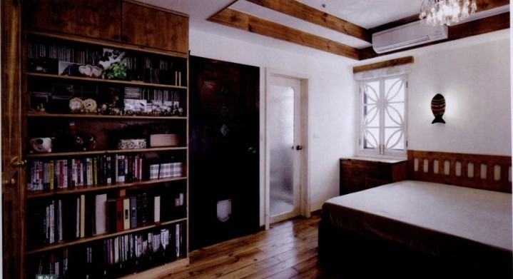 這個主臥里,松木落地衣櫥還有收柜,滿了臥室里的收納。書柜可以用來放置書籍外,還可以做為GG的收藏品的擺放地,這里是貓貓的禁地。