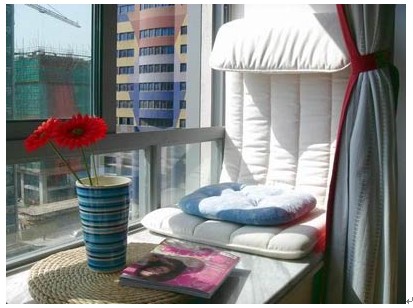 兩支鮮艷的花朵,舒適的靠墊,一本女性雜志,在午后溫暖的陽(yáng)光中在此小息,欣賞著窗外景色,讓人忍不住忙里偷閑,好好享受一番。