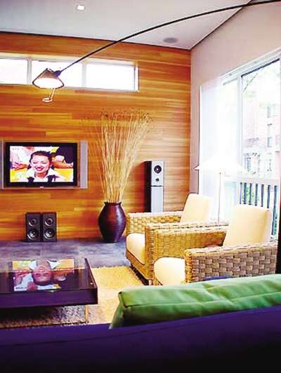 漂亮的木紋上了墻,讓本來(lái)工業(yè)化的房間顯現(xiàn)出自然的氣息,中和了簡(jiǎn)約風(fēng)格房間常有的冰冷感,雖然占據(jù)了一面墻,但是并不會(huì)感覺(jué)很搶眼,反倒是沙發(fā)、落地?zé)?、茶幾讓人印象深刻,這是由木材樸實(shí)的個(gè)性決定的。用木材裝飾背景墻,除了簡(jiǎn)約風(fēng)格,古典和鄉(xiāng)村風(fēng)格也很適合。
