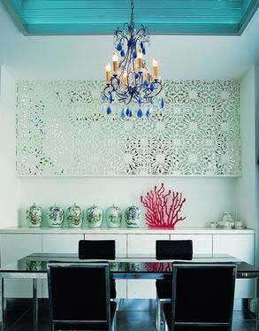這面背景墻位于餐廳,同時(shí)也是客廳和餐廳的共有墻,在兩邊都能欣賞到它的美?;y和亮麗的顏色共同營(yíng)造出伊斯蘭的華麗盛宴??蛷d背景墻的搭配方案里,燈飾的搭配同樣重要。很多時(shí)候,客廳的溫馨與浪漫就是通過(guò)這些小細(xì)節(jié)來(lái)體現(xiàn)的??梢哉f(shuō),現(xiàn)代客廳的裝修之美,在一定程度上是依靠光線修飾的。燈具早已不再是簡(jiǎn)單的照明工具,而是家居裝飾和生活情調(diào)的一部分,它靈性十足的設(shè)計(jì)為整個(gè)居室增添了無(wú)限生機(jī)。