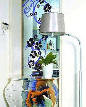 這是餐廳的一面背景墻,白色的玉蘭花迎風(fēng)怒放,寫出了滿墻春意。這面墻將整個(gè)空間的活力調(diào)動(dòng)了起來(lái),色彩非常跳躍,令人眼前一亮。雖然用的是壁紙,但是筆法隨意,全當(dāng)是美麗的工筆畫吧。又或者如果墻面有點(diǎn)單調(diào),又實(shí)在懶得動(dòng)手動(dòng)腦,貼幾幅背景畫或者布就OK了,時(shí)間長(zhǎng)了還可以更換,可謂是最實(shí)惠、方便的背景墻營(yíng)造方法。用畫裝飾墻面并不少見(jiàn),那么直接在整個(gè)墻上作畫呢?這是目前最為流行的墻面裝飾手法,也是純欣賞型背景墻經(jīng)常采用的方法??梢灾苯佑脡ζ嵩趬ι厦枘。部梢杂檬掷L壁紙,總之想把自己的欣賞品位完全融入居室里。