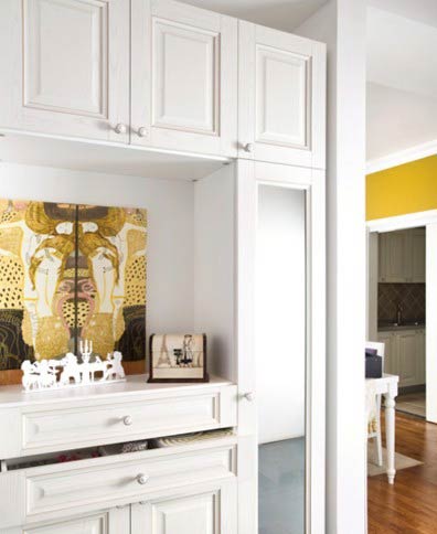 無論柜子里面的衣物收納得多么隨意,只要有一個(gè)大大的柜門把它們遮擋起來,便會(huì)非常整齊。白色也會(huì)增加光感,讓空間變得明亮。