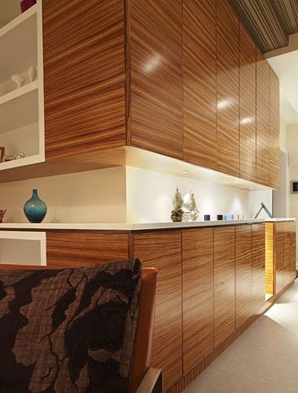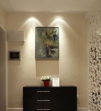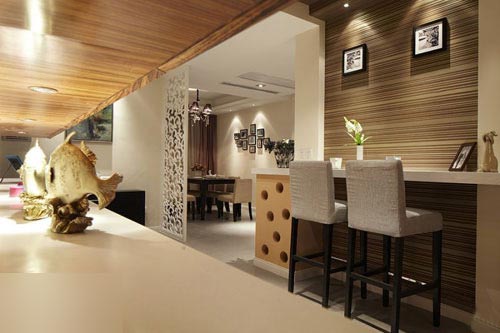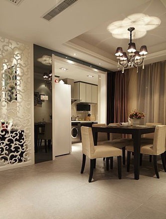 玄關(guān)柜,屏風后是餐廳。
