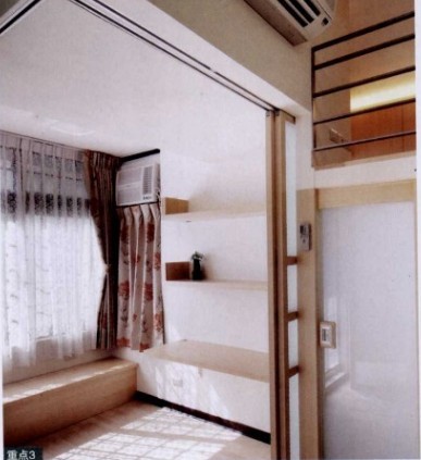 這個室內(nèi)只有30平左右的挑高空間,不僅格局要滿足生活所需,還得創(chuàng)造出意想不到的收納空間。收納空間其實包含了許多平日想不到的空間,如樓梯下方、窗臺下及床板下的空間,這些空間一般用定做柜體,但要整潔,才能避免對人間形成壓迫感。因此設(shè)計師還特別以隱藏式收納手法,通過無手把的門片及畸零空間的運用,滿足了收納功能,同時也讓空間更為清爽整齊。