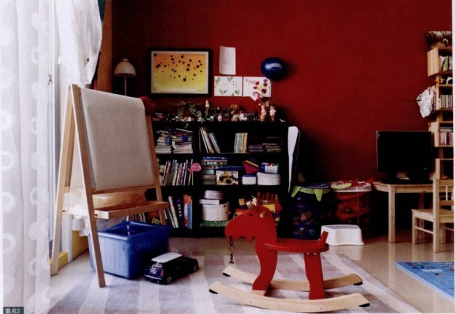 由于家人在客廳活動,所以特別在角落里規(guī)劃小孩專屬的游戲及閱讀空間,為了配合小孩的身高,書柜或置放玩具的柜子都設計得較矮,讓他們從小養(yǎng)成自己的習慣。