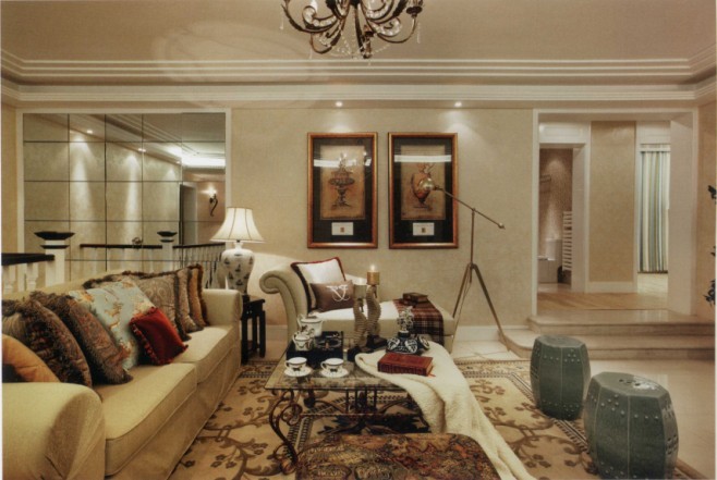 本案的設(shè)計師選用天然材料,用簡潔、明晰的線條進行裝飾,與穿金戴銀、色彩夸張的歐式風(fēng)格家居相比,該風(fēng)格更具親和力,向人們傳遞了一種自然而純粹的美,體現(xiàn)了人們對舒適、寧靜生活的向往。沙發(fā)的色調(diào)古樸而典雅,以溫暖柔和的色彩為主色調(diào)。其造型端莊凝重,設(shè)計大氣磅礴,坐感舒適,流露出溫馨、浪漫和時尚感。在美式風(fēng)格家居中,文化和歷史的包容性是一大特點,可以在本案的設(shè)計中看到中式元素的影子。大氣、經(jīng)典,細節(jié)精雕細琢,都是美式休閑風(fēng)格的表達。松軟的坐墊與靠背,可隨意搭配的抱枕,再配上傳統(tǒng)美式涂裝效果的雕飾線條,讓人感受到恬靜典雅、休閑舒適的居室氛圍,其成為了現(xiàn)代人追求高品質(zhì)生活的首選。