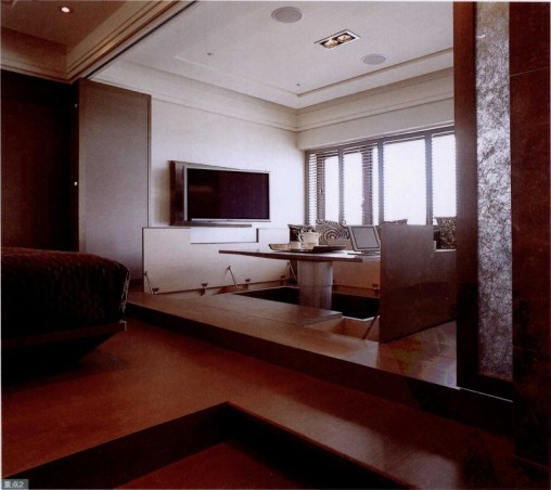 能攬入難得的自然景觀,設(shè)計(jì)師將空間重新調(diào)整,把地板墊高作為多功能室,墊高的地板設(shè)計(jì)為倚窗的木作沙發(fā)座,讓人可以坐著欣賞窗處美景。同時(shí)以拉門(mén)與客房連接,讓空間使用更具彈性。家具選擇及配置也是設(shè)計(jì)的重點(diǎn),設(shè)計(jì)師依空間比便量身定制家具,并搭配特別挑選的燈飾,讓空間更具風(fēng)格。