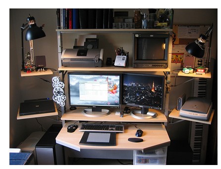 因此,電腦最好擺放在窗戶邊,屏幕和墻壁之間的距離最好在1米以上。如果必須把電腦靠墻壁放置,不妨在后面的墻壁上貼一些綠色或藍色的畫(如森林或大海),這些冷色調的墻紙進入視線,傳遞到大腦后,可以使情緒得到鎮(zhèn)靜,并有效地緩解焦慮和疲勞癥狀,使人心境變得開闊。