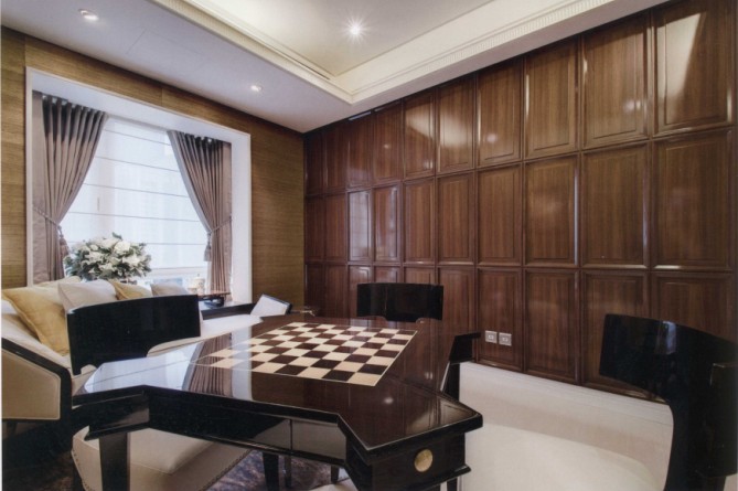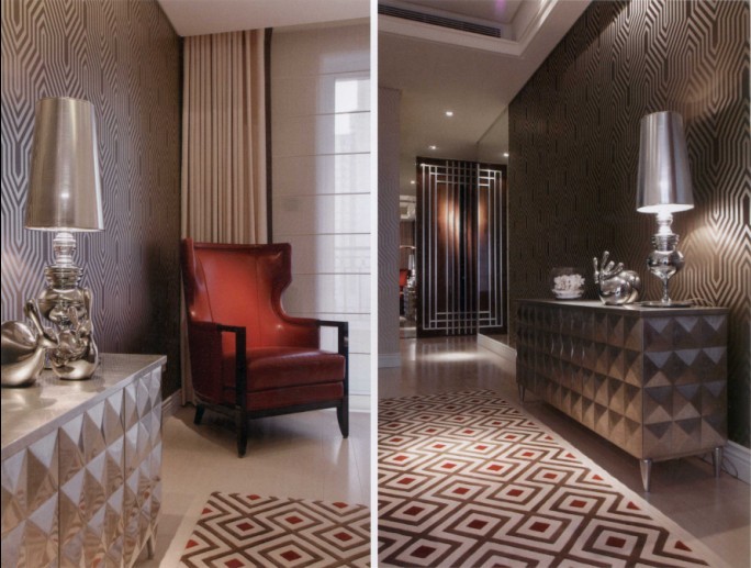 本戶型面積較大,為了打造富豪門(mén)第、都會(huì)城堡般的格調(diào),大量運(yùn)用對(duì)比強(qiáng)烈的色彩,耀眼夸飾的藝術(shù)造型突顯其不凡,以展現(xiàn)時(shí)尚莊園豪邸的大氣尺度。在空間裝修上,設(shè)計(jì)師運(yùn)用西方古典工藝的嚴(yán)謹(jǐn)精湛手法,同時(shí)將東方文藝復(fù)興的精神注入其中。整體空間氛圍傳遞著西方的浪漫,卻也輕訴著東方的曼妙----透過(guò)古典與現(xiàn)代裝飾藝術(shù)的交匯融合,顯示出復(fù)古、融匯、創(chuàng)新與再生的精神。老上海的清新魅力,為空間注入豐碩的生命力,也為居住者帶來(lái)全新的心靈悸動(dòng)。