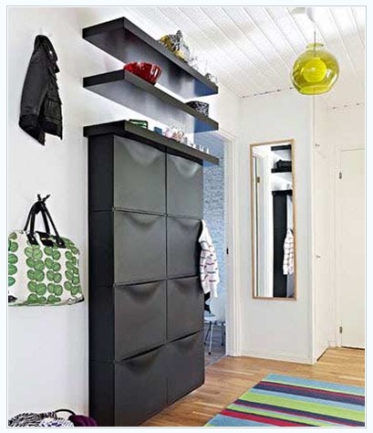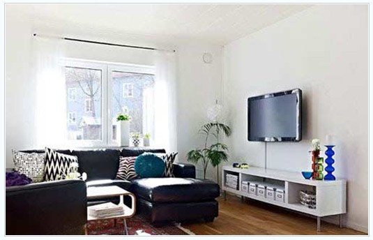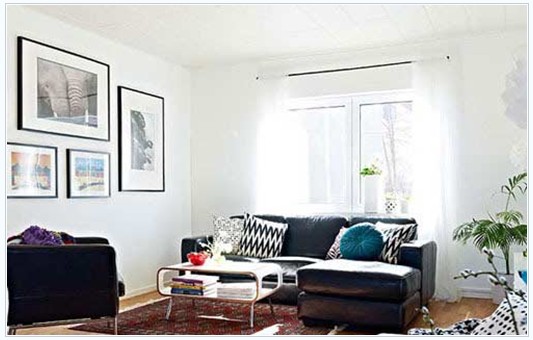 黑色的收納家具使房間顯得相當沉穩(wěn)而有質感,彩色條紋的地毯在進門的一瞬間就給來訪者一種歡快的家庭氛圍,深沉與活潑的相互襯托增加了空間的層次感。