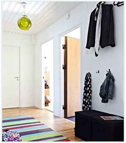 選用粘鉤將門廳的墻面全部利用起來,靈巧的收納小配件沒有了壁柜的笨重感,高低錯落的隨意安裝在墻面上,加上具有存儲功能的坐凳,讓整個空間看起來輕松休閑。