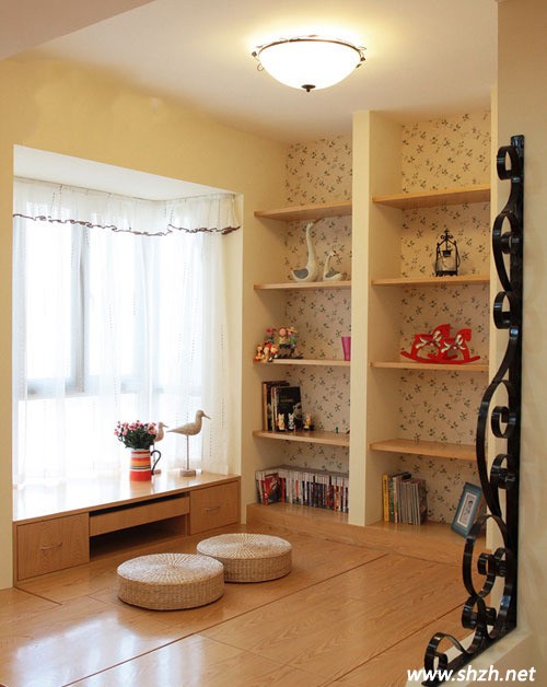 在中小戶(hù)型里,將某間房間設(shè)計(jì)成榻榻米形式,可以說(shuō)是最能節(jié)省空間、擴(kuò)大房間功能的方法。制作榻榻米房間時(shí),可將房間地面抬高,做在房間里面,中國(guó)的榻榻米下面是可以打開(kāi)放東西的柜子,中間還有個(gè)升降桌,圍著升降桌坐的時(shí)侯,根本不需要盤(pán)腿,腿是可以放下去的,跟平時(shí)坐凳子差不多。并在地臺(tái)內(nèi)設(shè)計(jì)若干個(gè)上拉門(mén)式或側(cè)拉門(mén)式儲(chǔ)物柜,可存放大量的被褥及其他雜物,節(jié)省出許多儲(chǔ)物空間;同時(shí),榻榻米可以承擔(dān)品茶、聊天、休閑、閱讀、睡眠等多種功能,特別是對(duì)于中小戶(hù)型業(yè)主來(lái)說(shuō),具有極為強(qiáng)大的“夜間親朋留宿”的功用。