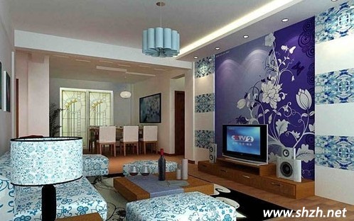 從上圖我們可以看到新中式風(fēng)格整體上講究的簡約、優(yōu)雅不奢華,居室的正主要格調(diào)是白色為主,墻壁裝飾使用白藍(lán)相襯,顯得室內(nèi)清新、自然。沙發(fā)、燈具選用的都是比較古典的藍(lán)白交錯(cuò)的自然圖畫。我們可以看出家具上,只是略微的保持了中式古典風(fēng)格,雖然家具造型完全現(xiàn)代,但一點(diǎn)也不失古典韻味。