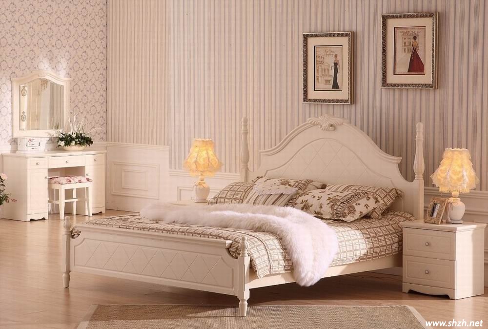 臥室:韓式家居的臥室布置較為溫馨,作為主人的私密空間,主要以功能性和實用舒適為考慮的重點,一般的臥室不設頂燈,多用溫馨柔軟的成套布藝來裝點,同時在軟裝和用色上非常統(tǒng)一。