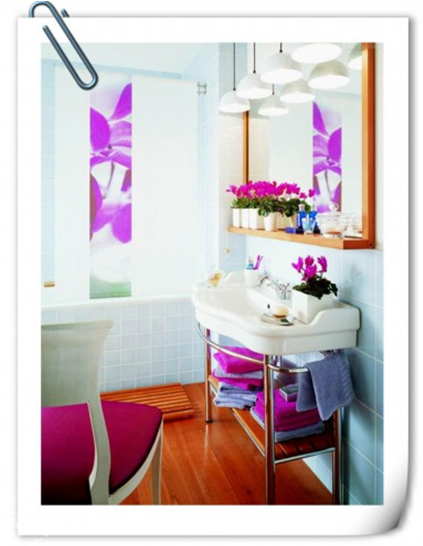 單身女人的衛(wèi)生間的設(shè)計(jì)可以體現(xiàn)出一個(gè)女人的氣質(zhì)與品位。作為女人清潔的重要空間,衛(wèi)生間洗手臺(tái)的布置也要很講究。大大的浴室鏡不可少,鏡前的紫紅色花朵可以營造浪漫氛圍。四個(gè)浴室吊燈在白天是個(gè)裝飾品,晚上則會(huì)讓浴室充滿情調(diào)?! ?/p>