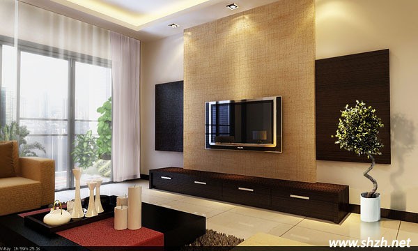 現(xiàn)在用于電視墻表面裝飾的材料種類很多,有石材類、玻璃類、金屬類、壁紙類等等。因小戶型的面積有限,所以一般不適合那些太過毛糙或厚重的石材類材料,而那些局部使用的鏡子會(huì)給空間帶來擴(kuò)大視野的效果,但要注意鏡子的面積不宜過大,否則會(huì)給人眼花繚亂的感覺。另外,壁紙類材料往往能給小戶型帶來溫馨多變的面孔,所以深得人們的喜愛。