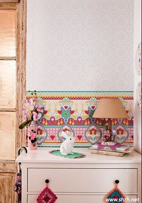 要想讓整個房間達(dá)到自己心中的預(yù)期,壁紙的顏色很重要,它甚至比花紋還要重要。亮麗及明快的顏色對人的情緒有激活作用,適宜用在餐廳和客廳,冷色及亮度較低的顏色可以使人精力集中,情緒安定,適宜用在臥室及書房。地面、家具最好與壁紙為同一色系,否則一個房間內(nèi)色彩太多會顯得過于雜亂。先說說壁紙的線條感,如果房子比較窄小,不妨選擇豎條紋的壁紙,這樣會延伸空間,從視覺上給人造成錯覺,如果覺得房子太大很空,那就選擇橫條紋或斜條紋,再者無順的花紋可以讓人覺得被包圍?;y的顏色、圖案、屬性要和房間屬性、家具搭配。壁紙展示廳中,鮮艷炫目的圖案與花朵最搶眼,有些花朵圖案逼真、色彩濃烈,遠(yuǎn)觀有呼之欲出的感覺。這種壁紙可以降低房間的拘束感,適合格局較為平淡無奇的房間。有規(guī)律的小圖案壁紙可以為居室提供一個既不夸張又不會太平淡的背景,你喜歡的家具會在這個背景前充分顯露其特色。如果你還是第一次挑選壁紙,選擇這種壁紙最為安全。帶有小花的壁紙與過于瑣碎的飾品搭配會使房間顯得雜亂無章,選購時應(yīng)該考慮整體的協(xié)調(diào)效果。巧妙的處理會讓人眼前一亮,不落于平庸,小編教你幾招粘貼壁紙的技巧:雙色疊加、雙色疊加、局部點綴和整面鋪就,讓你家的墻面變得與眾不同。不拘于常態(tài),不甘于一成不變,不喜歡常年如一……那么,“愛作”的你,是時候給家里墻面換套新裝了!壁紙除了顏色花紋外,拼接處理,鋪貼樣式,搭配方法……都是你在裝修墻面時應(yīng)該注意的地方。小編就用繽紛燦爛多彩壁紙來舉例吧,整個墻面用了幾乎看不見的淺色壁紙來打底,在中間偏下部位,用了一小塊繽紛多色花紋壁紙來做一個腰線處理,分割空間的同時,更是讓墻面亮起來,活躍空間氛圍。繽紛卻不俗艷,多色卻不雜亂,這樣燦爛的壁紙反而透出一股小清新的姿態(tài),著實讓人喜歡。