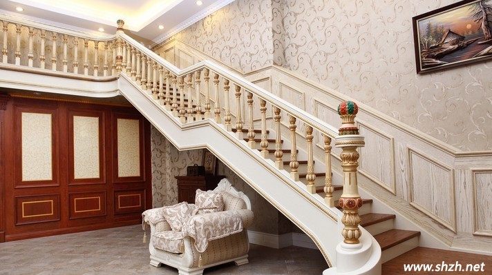 常見的樓梯裝修一般是木踏腳板和木或鐵藝的扶欄。如果整體居室環(huán)境強(qiáng)調(diào)歐式風(fēng)格,那樓梯裝飾的材料要盡量使用鍛鐵或者鑄鐵??上У氖?,有些人家里盡管擺放著中式古典家具,但是樓梯卻是用鐵藝材料包裹的,這就破壞了室內(nèi)設(shè)計(jì)要協(xié)調(diào)統(tǒng)一的原則。
