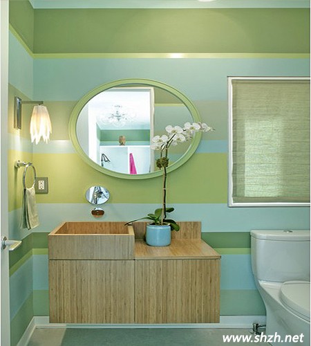 對(duì)于小戶型來說,衛(wèi)生間以簡潔設(shè)計(jì)為主,藍(lán)綠相間的條文背景墻,頗為清新靚麗。木質(zhì)洗浴臺(tái)上擺設(shè)盆栽,春的景象映入眼簾。柔和的燈光照耀,十分溫和舒適。