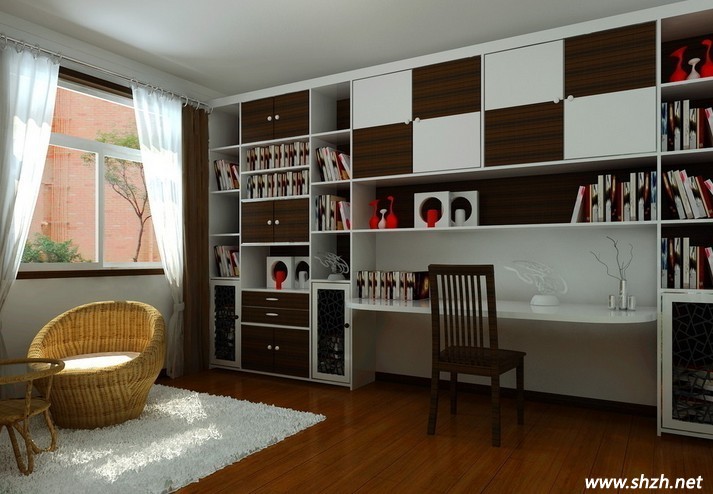 書房之顏色最佳為乳白色,象牙色,白色,這三種顏色與人之視覺神經(jīng)最適合,因?yàn)樘?yáng)光是白色系列,代表光明,人的心。眼也須要光明來調(diào)和,而且家中白色系列最好配置家俱,白色系列也是代表希望。