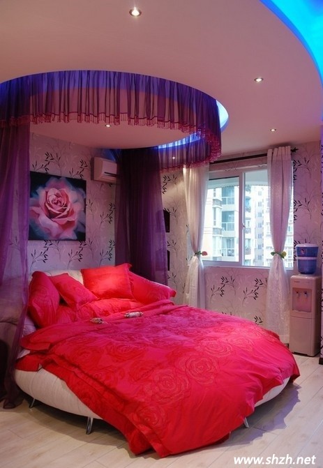 婚房裝修 紫色系 床幔