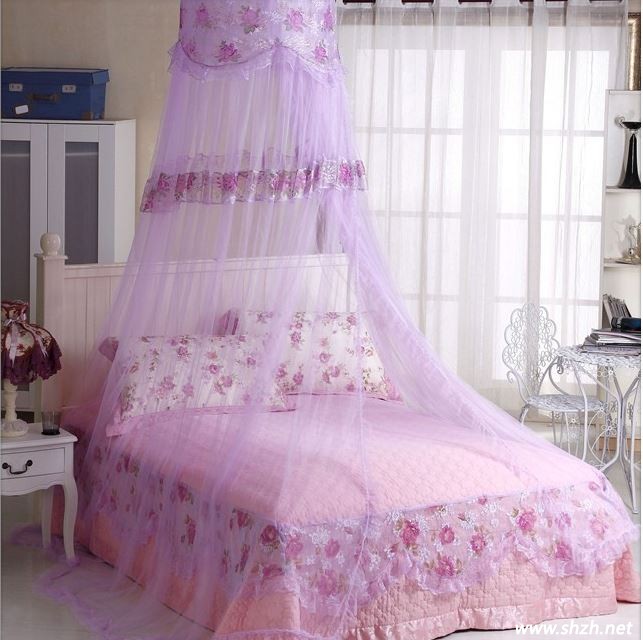 紫色是一個(gè)神秘而性感的色彩,它代表著永恒。例如紫水晶,代表了永恒與純潔的愛;而像薰衣草這樣的淺紫色又是樂趣的象征,讓人們?cè)诓唤?jīng)意的某個(gè)瞬間回憶起了春天的美好還有年輕時(shí)浪漫的往事。用紫色做成的床幔爛漫溫馨,這種垂簾式的床幔是最適合大圓床的了,讓滿眼的爛漫充實(shí)視野,躺在其中享受屬于你們的小小薰衣草海洋。