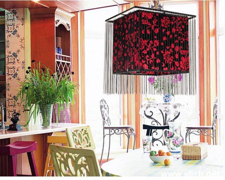 餐廳是大家進(jìn)食的地方,中國人古話就有:民以食為天。所以說中國人對(duì)于吃是很講究的,那么為你家的餐廳填上一盞喜氣的彩燈會(huì)讓家人食欲大增。像圖中這樣一款黑紅相間的花紋布罩,古典優(yōu)雅與時(shí)尚并存,裝飾性強(qiáng)除外還照亮一片溫馨,黑色噴漆的五金鐵藝,工藝的展現(xiàn),夜間燈光效果溫雅柔和,令人輕松愉快,餐廳的氣氛就應(yīng)當(dāng)是這樣的。