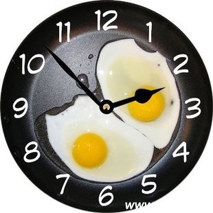 不知道紅太狼用來拍打灰太狼的那個(gè)平底鍋是否在清晨,煎著兩個(gè)愛心雞蛋?這款平底鍋掛鐘,很有創(chuàng)意,也很搞怪。它給人的寓意就是:我是時(shí)樂鍋,掌管時(shí)間是我的樂趣所在。