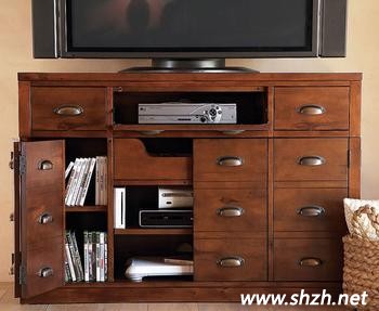 以前的老式衣柜做工都非常的精致細(xì)膩,華麗的雕花很是漂亮,厚重的實(shí)木家具也彰顯了主人的品位,只需要小小改造就是一個(gè)造型別致的電視柜了?,F(xiàn)在的電視柜也越來(lái)越流行帶門的款式,這樣更有利于電視的防塵;衣柜本身就是容量很大的家具,所以可以輕松放下一個(gè)液晶電視,。只要把上面幾層的隔板拆了,再在衣柜后面的隔板上打個(gè)孔方便電視電線通過(guò)即可。原本的抽屜更是可以成為DVD等放映設(shè)備的的安置處,或者用來(lái)收納各種影碟和錄影帶。