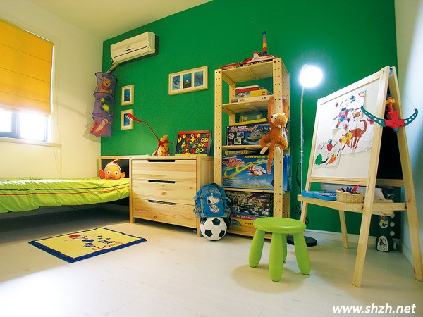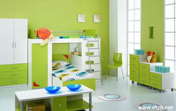 綠色是一個(gè)快樂(lè)的色彩,用這個(gè)顏色來(lái)打造兒童房特別是男孩子的房間可以幫助小寶貝形成開(kāi)朗的性格。