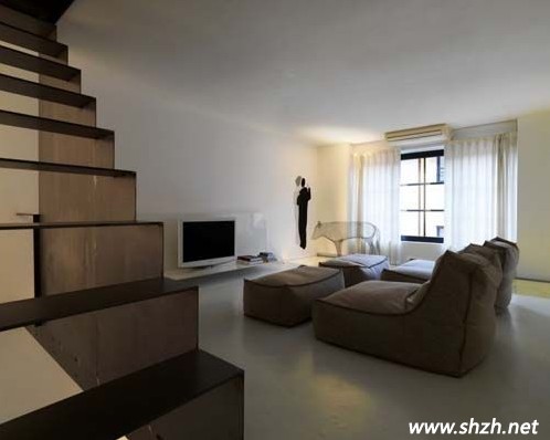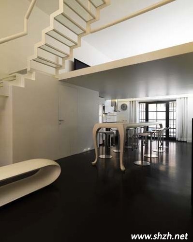 上海裝潢網(wǎng):圖一中的三幅是這個(gè)LOFT的第一樓,南北通透的房型最好布局了,設(shè)計(jì)師把廚房安放在進(jìn)門處,讓每一位來者第一時(shí)間感受到家的溫馨,轉(zhuǎn)身即到的餐廳中,餐桌采用吧臺(tái)的造型,時(shí)尚美觀,另外大家看見餐桌后的白色櫥柜了嗎?即使有很大的空間,設(shè)計(jì)師仍然沒有浪費(fèi)樓梯下的大好空間,在此打造了一個(gè)容量巨大的收納室。最后順著餐廳走過,一樓的另一端墻壁也完全打開,門外的陽臺(tái)也是一道風(fēng)景線。