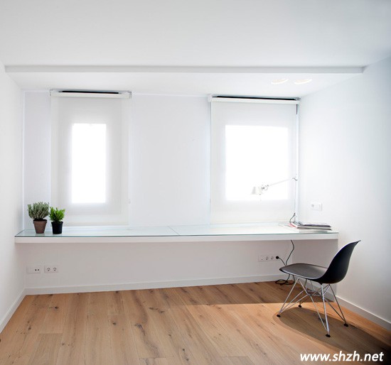 這里就是小小的工作室了,是針對(duì)現(xiàn)代80后而設(shè)計(jì)的哦!正直年輕,工作事業(yè)才是最重要的,因此,在這里設(shè)計(jì)出切合實(shí)際的符合業(yè)主需求的工作室,純白色的空間,使室內(nèi)變得特別的寬敞明亮,而白色的隔板做成書(shū)桌,桌上沒(méi)有過(guò)多的裝飾,這樣更能讓人擁有安靜的工作環(huán)境,而兩盆綠植,則帶來(lái)了自然清新的味道,工作累的時(shí)候,還能享受到到大自然的味道,非常愜意。
