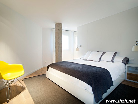 臥室的設(shè)計(jì),也許你很快就會(huì)注意到了那個(gè)水泥柱子,的確是,整個(gè)臥室最大的亮點(diǎn)莫過(guò)于水泥柱了,設(shè)計(jì)師采用了巧妙的手法,在入門(mén)處設(shè)置水泥柱,這樣就變成了入門(mén)玄關(guān),很好的保護(hù)主人的隱私,符合風(fēng)水原則。
