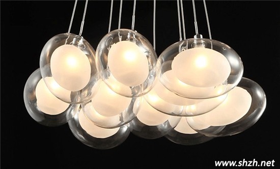咋一看是不是像雞蛋?一個清光玻璃外罩掛著一個磨砂玻璃內(nèi)膽,非常神奇。多個“雞蛋”的組合,形成一個富有創(chuàng)意的吊燈,既貼近生活,又顯得時尚美觀,同時可以跟不同風(fēng)格的家居設(shè)計相符,輕松駕馭。玻璃是光滑的,因此,清潔起來也非常方便,美觀實用都兼得啊。